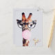 Jirafa con gafas soplando una burbuja de chicle rosa.