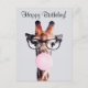 Postal Jirafa con gafas soplando chicle Feliz Cumpleaños