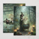 Entrar en un bosque encantado donde la magia cobra vida. Esta postal ilustra a una joven bruja de cabello oscuro, vestida con un vestido verde que fluye y un gorra a juego, leyendo atentamente de un pergamino antiguo. Perfecto para los amantes de la estética brujera, el arte de fantasía y los regalos místicos, este diseño captura la esencia del encanto, el ritual y el asombro.