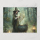 Postal Joven bruja en ritual místico forestal