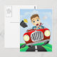 Postal Joven empresario que conduce un coche rápido clási