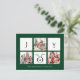 Envíe personalizable y saludos personalizados de vacaciones a amigos, colegas y familia en un simple, moda, elegante y moderno diseño de collage de 3 fotos, tarjetas de estilo minimalista natural! En la parte delantera, un collage de tres fotos rodeado por la palabra "alegría" con un lindo rostro de reno en la tipografía moderna aparece en un hermoso fondo verde sabio. Debajo de la caligrafía se muestra el mensaje de bienvenida de su personalizado de nombre familiar en tipografía moderna.