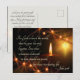 La hermosa postal de Navidades representa una brillante vela rodeada de estrellas y presenta la amada Biblia Verse Juan 3:16, "Por Dios amado el mundo, que dio a su único Hijo, que todo aquel que crea en él no debe perecer, sino tener vida eterna". El saludo de espalda se puede modificar y usar para muchas ocasiones._