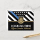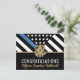 Este diseño presenta una bandera de la fuerza policial con franjas negras y blancas, y una franja de línea azul delgada también. Una excelente manera de decir felicitaciones al nuevo jubilado por su retiro. Personalice con el nombre del oficial de aplicación de la ley que se jubila, sheriff, capitán o jefe. ¡Celebre este hito con estilo!