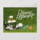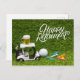 Jubilación de golf con cerveza en carrito de golf Postcard