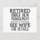 Relájate y descansa—tu nuevo jefe ha llegado! Este divertido diseño de jubilación es perfecto para el hombre recién jubilado que ha cambiado su trabajo de 9 a 5 por listas de tareas pendientes y proyectos en casa. Con un texto audaz y juguetón que dice "Jubilado – Bajo Nueva Dirección (Ver detalles con la Esposa)", es una forma divertida de celebrar un nuevo capítulo lleno de risas, amor y quizás algunas tareas más. Ideal para fiestas de jubilación, regalos o ropa de uso diario que dice: "He terminado de trabajar… más o menos".