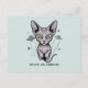 This whimsical cartoon illustration features a pale gray Sphynx cat with glowing green eyes, seated gracefully in a cosmic, dark space scene. Two gray UFOs shine beams on the cat, creating a playful yet mysterious vibe. Humor shines through the caption “NOT A CAT.. STILL JUDGING YOU.” Perfect for cat lovers, sci-fi fans, and anyone who enjoys quirky, modern space-themed art. Eye-catching, fun, and unforgettable.
