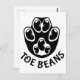 Una pata negra con judías negras en los dedos de los pies, con el texto "Judías de remolque", debajo de la pata.