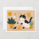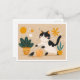 Ilustracion moderno de inspiración escandinava con gatos negros y blancos jugando con lana entre macetas de flores. Mirando pequeños pájaros. Los colores son cálidos, beige y mostaza en tonos amarillos con plantas verdes. Un diseño caprichoso y minimalista que celebra la alegría, la naturaleza y el estilo moderno, perfecto para los amantes del gato y los fanáticos de la estética nórdica de la decoración casera.