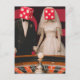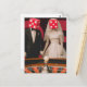 Un estilo artístico surrealista: novia y novio con dados por la cabeza mientras juegan en matrimonio