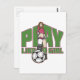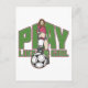 Las futbolistas mujeres con camisa rosa se paran en alto con pie en el balón de fútbol. ¡Juega como un texto Chica para los jugadores de fútbol duros y listos para el chica!