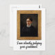 Esta postal muestra una reproducción de un viejo retrato/pintura, con la mujer diciendo: "Estoy juzgando silenciosamente tu gramática".