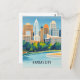 Un afiche de viaje de estilo vintage con el icónico perfil de Kansas City. La imagen muestra el rascacielos distintivo de la ciudad. El poster está diseñado en un estilo retro con una paleta de colores vibrante y un ambiente nostálgico.