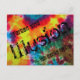 Bunte Postkarte im Batik-Look mit dem Spruch "Farben sind Illusion - ich denke farbig!"