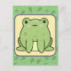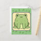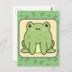 Rana kawaii verde dentro de un cuadrado amarillo en un fondo verde con un patrón de hojas.