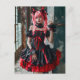 Postal Kawaii gótico con trenzas rojas