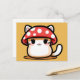 Corta el adorable gatito blanco kawaii con un hongo rojo en la cabeza.