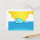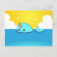 Una natación narwhal del pequeño kawaii azul dulce con un cielo amarillo hermoso detrás de él.