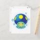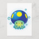 Un pequeño y dulce hongo del pulpo Kawaii flotando con burbujas.