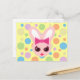 Postal Kawaii Sassy Bunny Pink Bow & Mod Dots