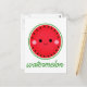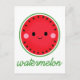 Ilustracion de una sandía kawaii adorable y deliciosa. El texto dice: sandía. ¡Qué lindo!