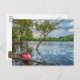 Tarjeta postal de "Recupérate pronto" con un kayak rojo flotando cerca de la orilla junto a un pequeño y torcido árbol en una nublada mañana de verano en Oak Grove, Arkansas, Estados Unidos, en el lago Table Rock. ¿Buscas más impresiones o productos? No dudes en visitar mi tienda: http://www.zazzle.com/timelessmomentsphtgy