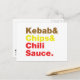 Gracioso Humor de comida chatarra para comer ~ Kebab y chile y salsa de chile. Globe Trotters se especializa en imágenes idiosincrásicas de todo el mundo. Aquí encontrará tarjetas de felicitación únicas, postales, Posters, Mousepads y más.