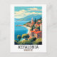 Elegante viaje retro vintage con vistas panorámicas a la hermosa isla griega de Kefalonia. Bonito arte de vacaciones en Grecia para todos los turistas y aficionados al popular destino de viaje en el mar Mediterráneo. Haz lo tuyo y compra ahora.