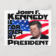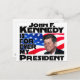 "John F. Kennedy es para siempre mi presidente" en un diseño audaz y patriótico que incluye el retrato del presidente respaldado por la bandera estadounidense.