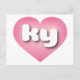 Esta postal tiene un corazón rosado con un centro blanco lavado que contiene las letras negrita, blanca, redondeadas y funda inferior, una abreviatura divertida para Kentucky, el estado de bluegrass. El lado inverso de la postal está en blanco, a la espera de tus sentimientos escritos a mano o de tu texto personalizado.
