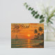 Key West, Florida at sunset retro travel tourism postcard with palm trees and a sail boat. You can personalize the text with this template.