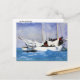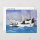 Postal de arte fino con la pintura acuarela Key West, Hauling Anchor (1903), del artista estadounidense Winslow Homer (1836-1910), pintor estadounidense del movimiento realismo. Esta postal representa un velero que planeaba con gracia las vibrantes aguas azules de la costa de Key West, Florida.