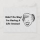 A retro 1950's era smiling woman says: Kid? No Way! I'm having a life instead." Great way to get the message across that you're not interested in having children. You are Child-Free By Choice.
