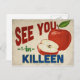 Una encantadora postal de viaje vintage de Killeen Texas con una hermosa manzana roja, junto con un divertido texto de estilo retro que dice: "Nos vemos en Killeen"