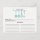 Tarjetas de recetas de utensilios de cocina con ducha de novia modernos que incluyen una cuchara de manto azul, espátula, whisk y masher con un elegante cartel que muestra el texto "receta" colocada sobre un fondo blanco. La parte delantera de nuestra receta ofrece espacio para un título de receta, desde la cocina de y el espacio de ingredientes. Girar nuestra receta para ver las direcciones, el tiempo de preparación y el tiempo total. Disponible en nuestra tienda en una gran variedad de populares colores de ducha de boda. Una invitación perfecta a la ducha de novia inserte para una habitación la ducha de la cocina.
