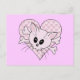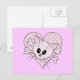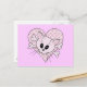 ¿Te gustan los gatos gatos? El cráneo de gatito rosado y los huesos cruzados se colocan sobre un corazón con estampado rosa. ¡Esta es una postal del cráneo adorable que todos amarán!