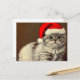 Postal con un gatito de Navidades en un sombrero de Santa! Un gato gris y malhumorado golpea una linda pose. Un regalo perfecto para los Navidades y los amantes del gato.