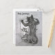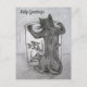 Palabra en la nota de la tarjeta "Kitty Greetings" (Saludos a Kitty) pero se puede cambiar para hacer su propio mensaje de tarjeta de felicitación personalizado. El arte muestra un dibujo a lápiz de un gato negro inclinado sobre un bol de peces dorados. ¡Haz tus propios regalos de amante de los gatos personalizados con mensajes personalizados!