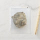 Knobbed whelk seashell postcard. Include your own message on the back if you choose. On the front, a beautiful tan-gray whelk shell photo. An ocean beach scene is the background for your own message.