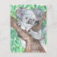 Postal de Koala en Eucalyptus Tree de acuarela original y pintura de medios mixtos. Este adorable Koala, encaramado entre suaves hojas verdes y frescas, hace una hermosa forma de mantenerse en contacto con sus amigos y también hace un gran arte mural