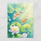 Postal Koi Fish Swimming in Pink Lotus Flower Pond