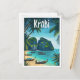 Postal Krabi Tailandia Ilustracion de viajes de arte vint