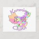 Kunming de la provincia de Yunnan en un colorido mapa de China incluye los símbolos chinos para 'Kunming' y su ubicación está marcada en el mapa con un corazón y una bandera. ¡Un regalo único y divertido! Diseñado por Hendrika de RedThreadMaps.com