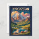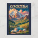 Kyrgyzstan retro vector travel design. From the serene beauty of Issyk-Kul Lake and the rugged Tian Shan range to the cultural heart of Bishkek and the scenic trails of Ala Archa National Park, Kyrgyzstan offers an unforgettable blend of nature, adventure, and tradition.