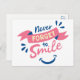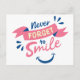 Abróchese el día de alguien con esta divertida tarjeta de comillas de color rosa y azul. La frase de actitud feliz "Nunca, olvídate de sonreír" está impresa en fuentes divertidas rosa y azul con un cartel rosa y una cara feliz. Feliz carátula sonriente son perfectas para * saludos - hola, pensar en ti, amor, extrañarte, ponerte bien, cumpleaños * negocios * bodas y fiestas * regalos de papelería - ata una cinta de bonito alrededor de pocas tarjetas. Desplácese hacia abajo para ver los productos coincidentes que pueda disfrutar.