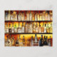 Postal con una representación artística de botellas de licor y licores colocadas en estanterías para el bar trasero de un establecimiento. acuarela digital creada con software de generación de IA.