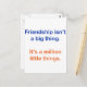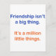 No son grandes gestos los que hacen amigos, sino la mil bondad diaria que ofrecen. Un regalo perfecto para los mejores amigos. Dice "La amistad no es algo grande. Es un millón de pequeñas cosas".