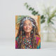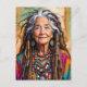 Manténgase en contacto con un amigo o miembro de la familia con esta divertida postal con un ilustracion aéreo de una anciana hippie fresca con candados temerosos con un fondo de tintes de corbata. Colores vibrantes, ilustracion artístico único de no tu anciana diaria.