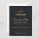 La boda guarda el cartel de fecha con un ilustracion de color dorado sobre un fondo gris negro. Diseñado con un ilustracion de montaña con los rayos de sol brillando hacia afuera desde atrás. La tipografía dice: "Aventura explorar el descubrimiento de los sueños".