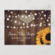 Personalice fácilmente esta boda de girasol personalizado ahorre las postales de fecha con los detalles de su boda. Nuestro diseño es ideal para un campo rústico, o para una fiesta de bodas de granero inspirada en los girasoles.